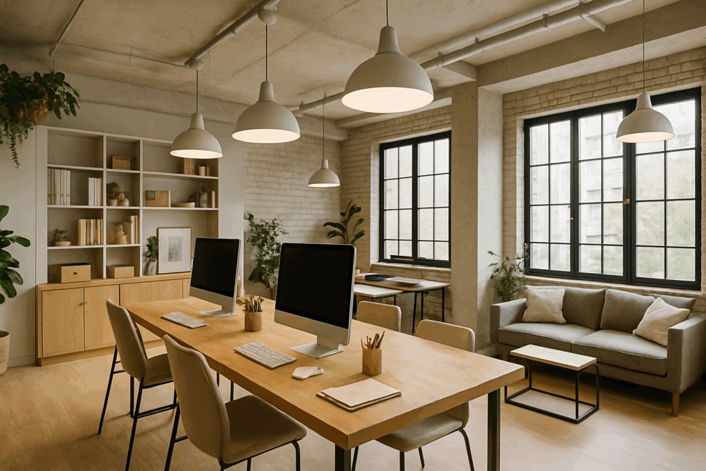 室内の雰囲気を損なわず、仕事にも集中できるよう、シンプルかつ機能的な作業スペースを設計しました。